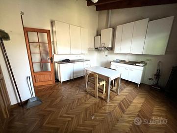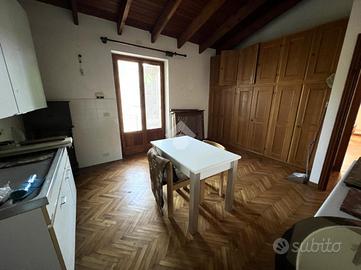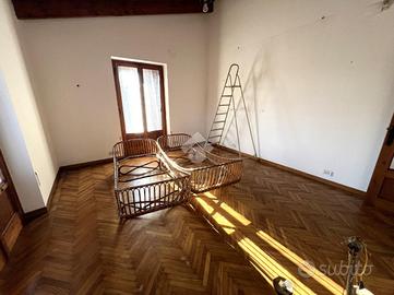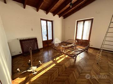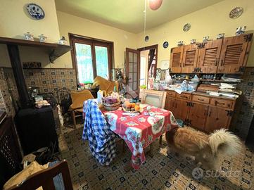 La casa si presenta in buone condizioni con pavimentazione in piastrelle al piano inferiore e parquet;gli infissi sono in legno doppio vetro con scuri in legno.