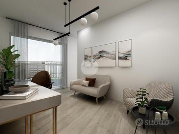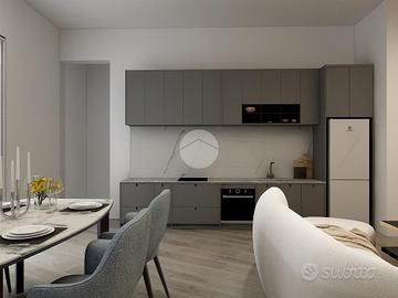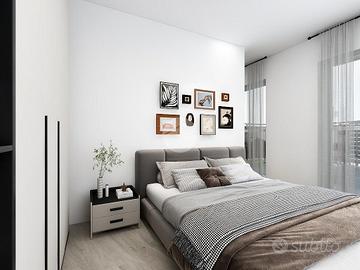 La soluzione, di nuova costruzione, risulta inserita in un elegante contesto in fase di totale riqualificazione.
