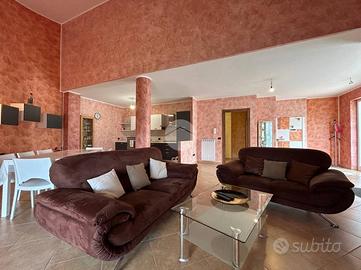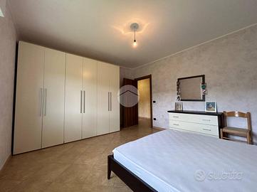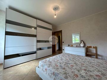 L'appartamento al piano terra offre accesso diretto agli esterni . E' composta da un ampio soggiorno, la cucina baitabile, tre camere da letto e doppi servizi. Tramite la scalinata interna si accede alla tavernetta e al garage.