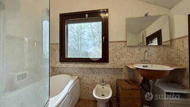 Salendo al piano superiore si accede alla zona notte, composta da tre camere da letto. La camera padronale dispone di un ulteriore spazio adibito a cabina armadio e di un bagno privato con vasca, pensato per garantire comfort e privacy. Sullo stesso piano è presente anche un ulteriore bagno a servizio delle altre camere.