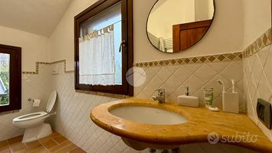 La villa si sviluppa su due piani garantendo comfort ed ampi spazi abitativi.L'ingresso conduce al piano terra, dove gli spazi sono ampi e ben distribuiti: il soggiorno dotato di camino ci accoglie in un'atmosfera calda e conviviale, la cucina è separata dalla sala da pranzo, creando ambienti funzionali e distinti, mentre uno studio offre uno spazio riservato perfetto per lavorare o leggere. Completa il piano un comodo bagno.