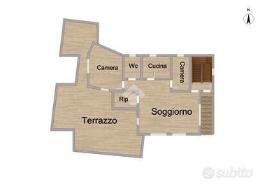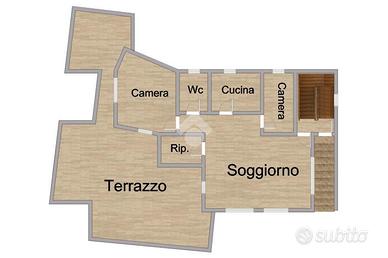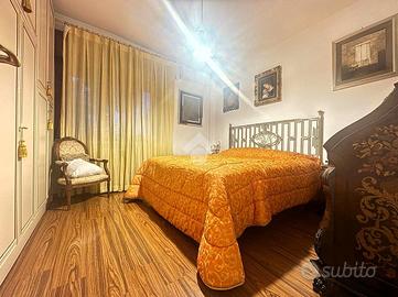 Il primo piano, è così composto: ingresso in doppio salone, due camere da letto di cui una matrimoniale, cucina, bagno, ripostiglio e ampio terrazzo.