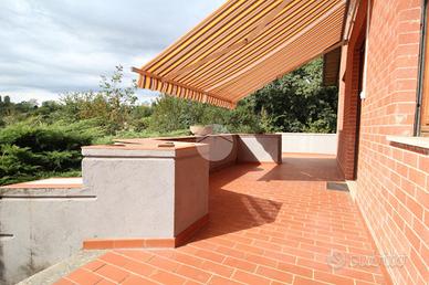 La villa, libera sui 4 lati, è posizionata nel declivio esposto a sud della collina di Moncalieri. La proprietà si sviluppa su un unico livello, caratterizzata da ambienti luminosi e ben distribuiti. L'ingresso conduce a un ampio soggiorno doppio con camino. A completare la zona giorno, una cucina abitabile con accesso diretto all'esterno. La zona notte comprende quattro camere da letto e due bagni, garantendo spazi funzionali e riservati per tutta la famiglia. Il piano mansardato, con buone altezze e versatile, offre due camere e un bagno, ideale come area ospiti, studio privato o spazio dedicato al relax. Al livello interrato si trovano due cantine e un autorimessa di circa 100 mq. Un'abitazione, che unisce l'eleganza degli spazi interni alla riservatezza di un contesto esclusivo, a pochi minuti dal centro di Torino. (In una foto del soggiorno è stato creato un soggiorno digitale per far comprendere meglio gli spazi)