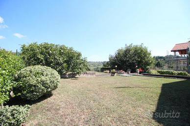 La villa, libera su quattro lati, è situata in un contesto privato e riservato immersa nel verde e nella tranquillità. L'abitazione si sviluppa su due livelli con ambienti ampi, luminosi e ben distribuiti. Al piano superiore troviamo un grande soggiorno con accesso diretto a un terrazzo vivibile. La cucina abitabile, anch'essa dotata di terrazzo, è separata e funzionale. Completano il piano due camere da letto e un bagno finestrato con doccia. Il piano inferiore è composto da un'ampia zona giorno open space, con cucina a vista e accesso diretto al giardino. Sono presenti due camere da letto e due bagni finestrati, oltre al collegamento diretto con la cantina e con il box auto. Il giardino di circa 1000 mq offre una vista panoramica su tutta la collina oltre alla possibilità futura di realizzare una piscina. La villa è stata ristrutturata internamente nel 2003, mentre nel 2007 è stato realizzato il cappotto esterno. Gli infissi in doppio vetro e le tapparelle sono state sostituite recentemente. Questa soluzione è ideale per chi cerca indipendenza, privacy e comodità in un contesto residenziale esclusivo.