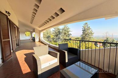 Revigliasco, in posizione collinare riservata e panoramica, ma comoda ai collegamenti con il centro città di Torino e Moncalieri, villa totalmente indipendente immersa nel verde e circondata da un giardino privato sui quattro lati. L'abitazione si sviluppa su più livelli ed è caratterizzata da ambienti ampi, luminosi e armoniosamente distribuiti. Al piano principale l'ingresso conduce ad un elegante salone doppio impreziosito da un raffinato camino. Da qui, così come dalla cucina abitabile e da due delle camere, si accede a uno splendido terrazzo panoramico coperto perfettamente integrato con gli ambienti interni e ideale per vivere momenti di relax con una vista aperta e suggestiva sulle colline circostanti. La zona notte si completa con quattro camere da letto, due bagni e due pratici ripostigli. Una scala interna collega al piano inferiore, dove si sviluppa un'ampia taverna, perfetta come spazio conviviale o area relax, affiancata da lavanderia, due locali di sgombero e un grande box auto con capacità per 4/5 autovetture con accesso diretto al vialetto privato. Anche questo livello è valorizzato da un ampio terrazzo panoramico, speculare a quello superiore, che offre un ulteriore spazio esterno riservato e fruibile in ogni stagione. Tramite scala interna è inoltre possibile accedere al piano sottotetto, ideale come spazio deposito. Completa la proprietà il giardino privato che circonda la villa su quattro lati, garantendo privacy, tranquillità e un contesto naturale di grande fascino.