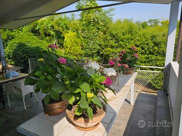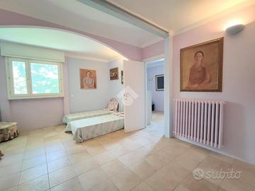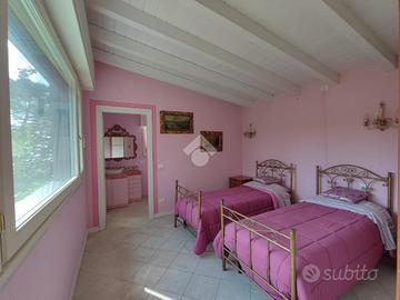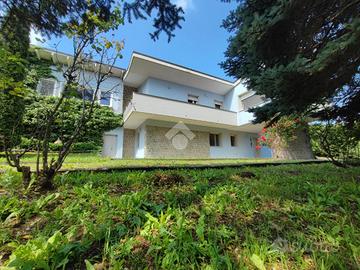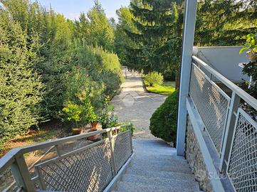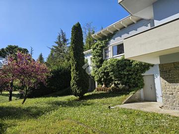 La villa, è immersa nel verde del parco di proprietà.Il viale privato costeggia il parco e porta all'abitazione, la quale rimane distante dalla strada e a mezza collina. Il cancello è elettrico e dotato di videocitofono. Dall'ampio terrazzo, ideale per godere del verde che la circonda, si accede all'abitazione. L'ingresso è accogliente e divide il salone dalla cucina, con pratica uscita sul terrazzo.La prima zona notte è composta da una camera da letto matrimoniale, con pareti in legno che la rendono piacevolmente calda, e dal bagno con vasca. La camera padronale, con doppia esposizione, ha la cabina armadio e il bagno privato con doccia grande. L'appartamento adiacente, al quale si può accedere dal giardino sul retro oppure dalla balconata, è autonomo e con predisposizione all'aria condizionata. Si tratta di un bilocale con ampio salone, cucina a vista, una camera da letto matrimoniale e bagno con doccia. I tetti in legno sono a vista e i locali hanno grandi vetrate sul giardino. Tutto il piano è particolarmente luminoso grazie alle grandi finestre e alle portefinestre che danno sui balconi con vista sul parco. Ulteriori due ampie camere, un bagno, il box auto, la lavanderia e un ripostiglio si trovano al piano inferiore, il quale ha ingresso indipendente dal giardino con porta blindata e collegato da due scale interne che portano al piano superiore. Completano l'immobile anche la cantina con botti in cemento, locale caldaia e porticato con vista sul giardino. Il giardino è in piano e, grazie all'esposizione e alla privacy delle siepi, si presta alla realizzazione di una piscina. Il grazioso giardino sul retro con il romantico glicine ha un locale già predisposto, in parte, alla realizzazione di un monolocale, e altri due locali utilizzabili anche per accogliere cavalli o cani. La ristrutturazione è recente e di qualità, realizzata con originali materiali come piastrelle pregiate di Vietri Antico e i pavimenti in pietra lavica. Gli infissi sono in legno pregiato...