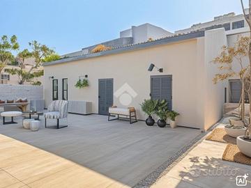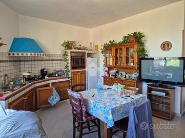 Esternamente, la villa è circondata da un ampio spazio esterno, perfetto per vivere all'aperto, con terreno pianeggiante piantumato con alberi da frutto e ulivi, ideale per chi ama la natura o vuole coltivare uno spazio verde personale.