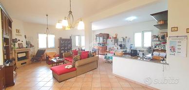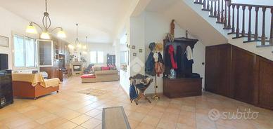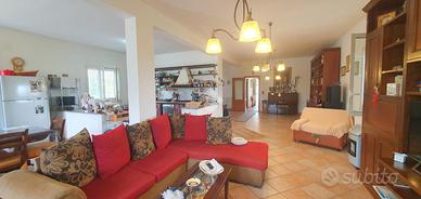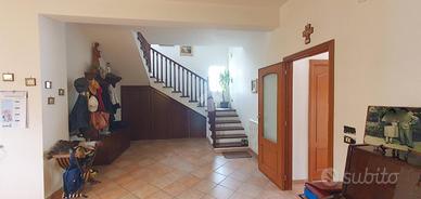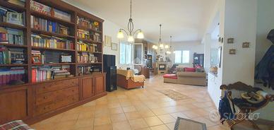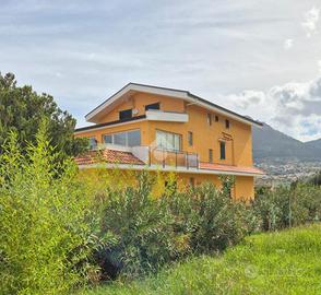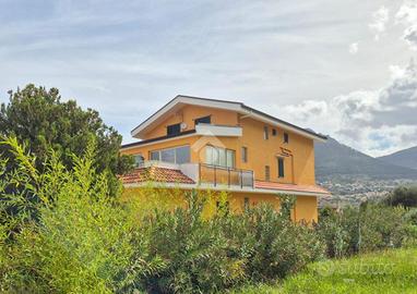 In posizione tranquilla e riservata, all'interno di un contesto residenziale esclusivo composto da sole tre ville, proponiamo in vendita una prestigiosa villa unifamiliare di circa 400 mq, disposta su quattro livelli e circondata da una corte privata che abbraccia l'intera proprietà. L'accesso avviene tramite cancello automatico che conduce alla stradella privata del complesso e all'ingresso della villa, dove è possibile parcheggiare diverse autovetture all'interno della proprietà. Piano seminterrato : Locale serbatoio e cantina. Piano terra : Ampio locale di sgombero, antibagno e bagno, elegante salone con camino collegato alla zona cucina, creando un ambiente ampio, luminoso e conviviale.Piano primo : Attraverso scale interne si accede al primo piano che ospita: Soggiorno, Due camere da letto, Bagno, Ripostiglio, Ampia zona giorno con uscita sul terrazzo che offre una vista panoramica mozzafiato;Il secondo piano comprende: Quattro camere da letto, Bagno, Ripostiglio. La villa presenta interni in ottimo stato di manutenzione, pronti per essere abitati senza necessità di interventi. Ha recentemente subito ristrutturazioni ai prospetti, ai balconi e alla pavimentazione antistante l'edificio, conferendo un aspetto moderno e curato. Il riscaldamento è autonomo con bombolone esterno, garantendo comfort e gestione indipendente. La proprietà dispone inoltre di un piccolo giardino sul retro, ideale per momenti di relax all'aperto o per chi è amante delle attività agricole. La corte esclusiva che circonda la villa garantisce privacy, comfort e spazi esterni ideali per vivere appieno la proprietà.