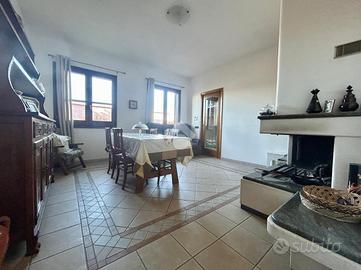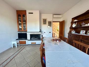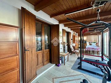 L'immobile, abitabile da subito e privo di necessità di ristrutturazione, si compone di un disimpegno d'ingresso che conduce a uno studio, due camere matrimoniali, un ampio e luminoso soggiorno con camino, un bagno con doccia e zona lavanderia, oltre a una spaziosa veranda chiusa, perfetta per trascorrere piacevoli momenti conviviali con famiglia e amici.