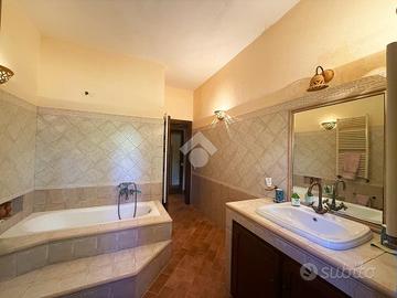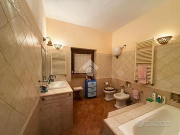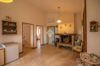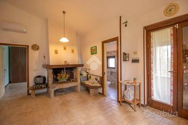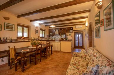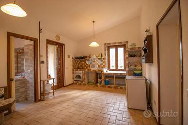 * Al piano primo si sviluppa il secondo appartamento composto da un luminoso salone con camino e cucina a vista, tre camere matrimoniali ed un bagno.Completa la proprietà un terreno che misura complessivamente circa 10.000 mq.