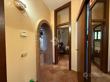 * Al piano terra vi è un accogliente appartamento composto da ampio salone con camino in muratura, angolo cottura e accesso alla zona notte con due camere da letto di cui una con cabina armadio e bagno interno, ed un ulteriore bagno.