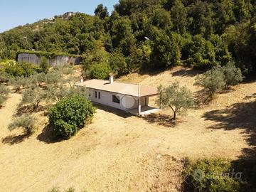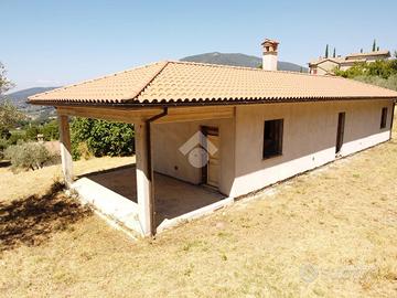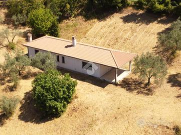 La villa misura 100 mq su unico livello, ed ha un portico di ulteriori 20 mq , attualmente in corso di costruzione pertanto priva di qualsiasi finitura, tramezzi, impianti e infissi.