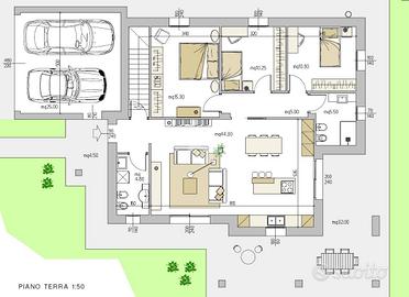 Spazi interni vivibili e funzionali caratterizzano la casa, composta al piano terra dalla luminosa e ampia zona giorno, con accesso diretto al portico di ben 37 mq e al giardino esclusivo di 550 mq, bagno; il disimpegno conduce alla zona notte, composta da camera matrimoniale e altre due camere, tutte servite dal secondo bagno. La scala in zona giorno ci porta al piano interrato, dove troviamo bagno/centrale termica e la taverna di 38 mq, con predisposizione per un caminetto.