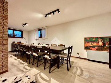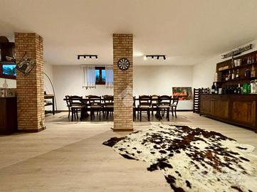 Il piano interrato è caratterizzato da un'ampia taverna con cucina, perfetta per momenti conviviali, un wc, una lavanderia, una cantina attualmente utilizzata come palestra e l'accesso diretto al garage doppio, comodo e pratico.