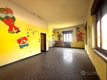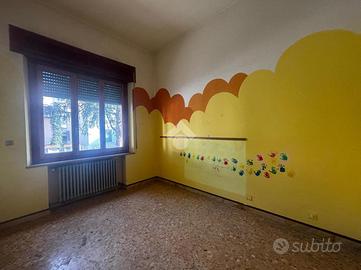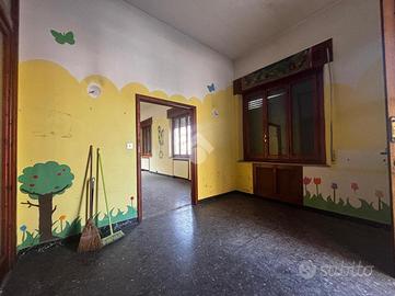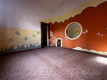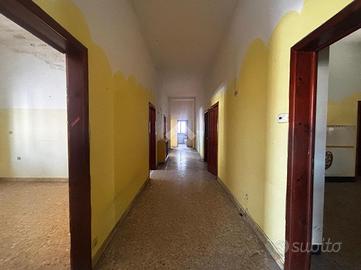 L'ingresso principale, dall'elegante loggiato, porta all'appartamento più grande al piano rialzato, composto da un ampio salone, cucina abitabile con terrazzo, corridoio, doppi servizi finestrati, due camere da letto doppie e quattro camere matrimoniali.