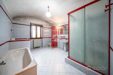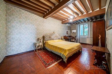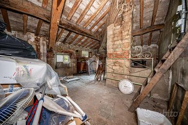 -PRIMO PIANO (abitazione): Salendo la scala in muratura si entra nel disimpegno del secondo piano; esso si snoda attorno il corridoio che accompagna fino all'accesso per salire al sottotetto. In ordine troviamo, una seconda cucina abitabile, 3 camere da letto; due matrimoniali spaziose e una leggermente più piccola, un secondo soggiorno con camino, bagno con doccia, anche questo non originale. Infine un piccolo terrazzino, decorato con motivi floreali, offre un grazioso sfogo che fa arrivare con lo sguardo fino al castello.
