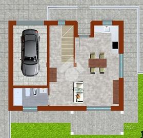 COMPOSIZIONE: Al piano terra, un open space accoglie la zona giorno, ideale per momenti di convivialità e relax con veranda posteriore per godere al massimo dello verde privato.