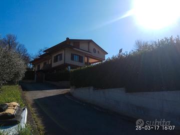 Villa su tre livelli di circa 180mq ognuno, con ampio garage e cantina, terreno di 2000mq tutto recintato con giardino e campo da tennis. Piano terra con taverna e camino, bagno, stanza con ampio spazio libero tutto finestrato; Primo piano con ampio ingresso, stanza da pranzo con camino e uscita su terrazzo, cucina abitabile con camino e uscita su terrazzo di 45mq coperto, 3 stanze da letto, 2 bagni; Secondo piano mansardato. La villa è tutta recintata con cancello automatico per ingresso auto e cancello pedonale. Giardino con piante ornamentali e sistema di irrigazione con pozzo. Senza agenzia immobiliare.