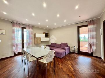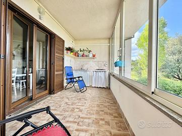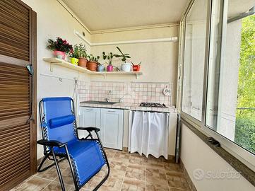 Al primo piano troviamo: soggiorno, cucinotto, camera matrimoniale con cabina armadio e bagno con tre terrazzi di cui uno coperto.