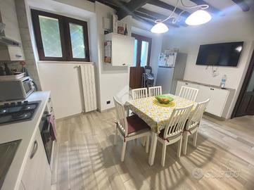 Al piano terra si trovano luminoso soggiorno, cucina abitabile e bagno di servizio.