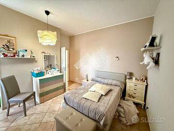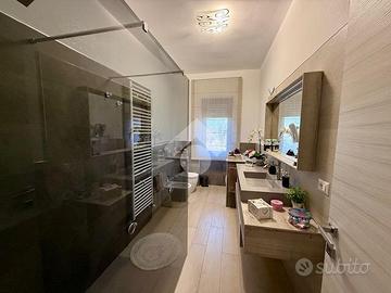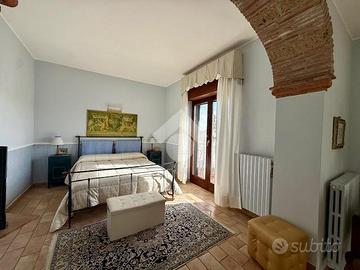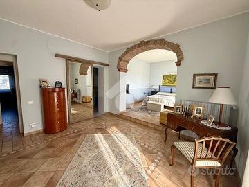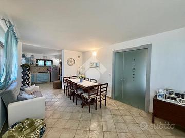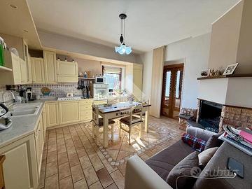 - Appartamento al piano terra e primo suddivisi in taverna con forno e camino, cucina abitabile con termocamino, sala, veranda attualmente chiusa con vetrate e ripristinabile a portico aperto, camera padronale con cabina armadio e bagno interni, 2 ulteriori camere da letto, bagno e 3 balconi.