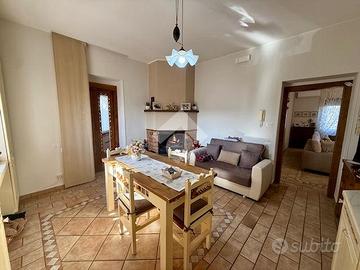 - Appartamento al piano terra suddiviso in cucina abitabile, tinello con camino, 2 camere da letto, bagno, portico attualmente chiuso, utilizzabile come rimessa auto e garage.