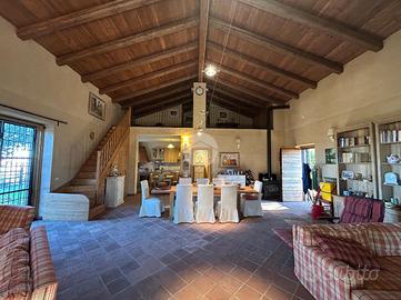 Al piano terra, l'immobile accoglie con un ampio salone impreziosito da un camino a legna, ideale per momenti di relax e convivialità, e una cucina funzionale.