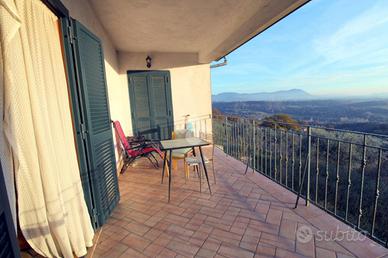 La villa, costruita alla fine degli anni '90, si inserisce armoniosamente nel paesaggio ed è libera su quattro lati, soleggiata e luminosa durante tutto il giorno. Dalle aree esterne lo sguardo si apre sulla campagna sabina, con tramonti suggestivi sul Monte Soratte che accompagnano le serate.