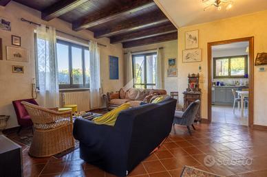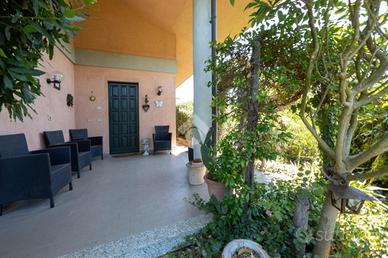 L'entrata tramite portoncino si apre sul soggiorno che rimane luminoso grazie alla porta finestra con uscita sul portico coperto e altre due finestre. La cucina, separata dal soggiorno, è un ambiente abitabile che offre anch'essa la possibilità di uscire sul porticato e quindi sul giardino.