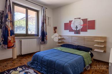 La zona notte rimane sullo stesso piano ma è separata da un disimpegno: è formata da due camere da letto di ottima metratura, di cui una con la possibilità di uscire sull'esterno, e due bagni finestrati con doccia.
