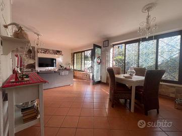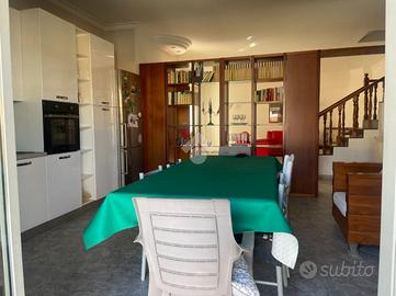 La villa si sviluppa su due livelli ben separati: un piano giorno e un piano notte. Al piano giorno, un ampio e luminoso soggiorno, arricchito da un camino che crea un'atmosfera calda e accogliente, ideale per momenti di relax in famiglia o con gli amici. La cucina abitabile è spaziosa e funzionale, perfetta per preparare i pasti in completa comodità. Un bagno di servizio e una scala interna ci conducono al piano notte.