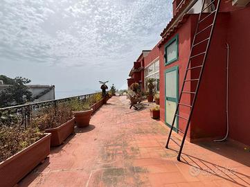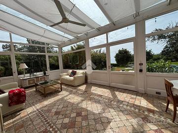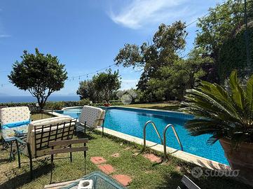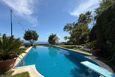 Prima unità disposta su due livelli è composta da: ingresso in corte, due cucine funzionali, due spaziosi saloni, di cui il terzo immerso nel verde e circondato da vetrate per essere vissuto tutto l'anno, sei camere da letto ogni una con servizio in camera, un pratico ripostiglio , ampio giardino con piscina privata e terrazzo panoramico con splendida vista sul mare.