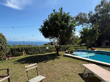 Prima unità disposta su due livelli è composta da: ingresso in corte, due cucine funzionali, due spaziosi saloni, di cui il terzo immerso nel verde e circondato da vetrate per essere vissuto tutto l'anno, sei camere da letto ogni una con servizio in camera, un pratico ripostiglio , ampio giardino con piscina privata e terrazzo panoramico con splendida vista sul mare.