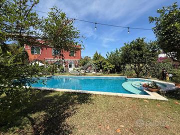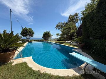 Prima unità disposta su due livelli è composta da: ingresso in corte, due cucine funzionali, due spaziosi saloni, di cui il terzo immerso nel verde e circondato da vetrate per essere vissuto tutto l'anno, sei camere da letto ogni una con servizio in camera, un pratico ripostiglio , ampio giardino con piscina privata e terrazzo panoramico con splendida vista sul mare.
