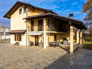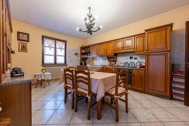 Sito in una tranquilla frazione di Narzole proponiamo in vendita villa indipendente su quattro lati e sviluppata su tre livelli. Dal cancello si accede sullo spazioso giardino privato e, seguendo il sentiero pavimentato, si arriva alla proprietà. Il piano terra è composto dalla prima cucina, utilizzabile durante il periodo estivo, dalla taverna, dal primo bagno e da due cantine. La parte abitativa si sviluppa al primo piano. L'accesso avviene sul disimpegno che conduce alla sala da pranzo, dotata di passaggio sul terrazzo coperto. La zona giorno è formata anche dalla spaziosa cucina e dal secondo servizio. Il corridoio conduce alle tre camere da letto, ed al terzo servizio. La scala interna porta infine al sottotetto, l'ultimo piano dell'abitazione. La proposta è dotata anche di tettoia, del magazzino coibentato e di due garage. Il riscaldamento bizona è autonomo a gasolio, ma è utilizzabile anche la legna.