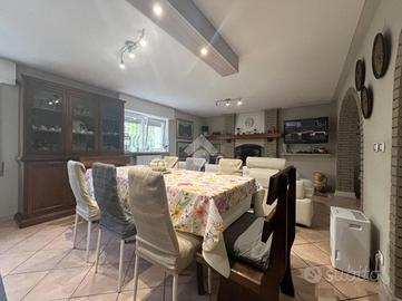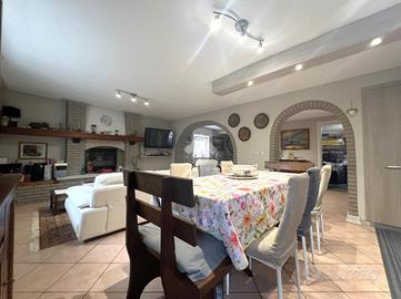 al piano terra il disimpegno d'ingresso affaccia su una zona giorno completamente ristrutturata, organizzata tra salotto e cucina abitabile a vista. Protagonista il camino, che occupa quasi per intero una parete; con inserto in monoblocco, è avvalorato dalla struttura esterna in mattoncino ed è dotato di una base d'appoggio e di una trave in legno che funge da mensola, il che lo rende un vero e proprio elemento d'arredo.