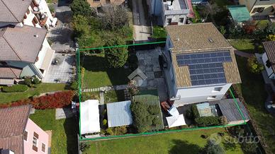 Il giardino, piantumato e ben tenuto, si estende su una superficie totale di 600 mq circa (di cui 270 mq edificabili), distribuiti tra parti pavimentate, aree verdi e una zona gazebo con barbecue.