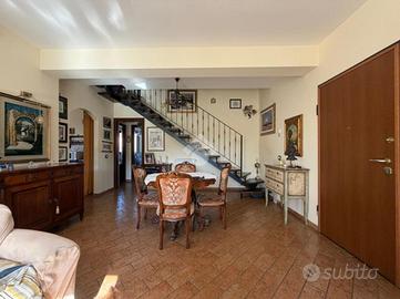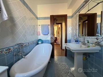 Al piano terra troviamo un ampio e luminoso salone con uscita diretta sul giardino, una cucina abitabile con accesso al portico esterno, un disimpegno che conduce alla zona notte composta da una camera matrimoniale, una cameretta e un bagno finestrato con vasca. Completa il piano una comoda lavanderia esterna .