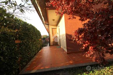 NERVIANO - SANT'ILARIO Zona tranquilla e riservata, composta principalmente da ville e case indipendenti, ben riparata dal traffico cittadino e nelle vicinanze dei servizi di prima necessità come scuole, fermate dei mezzi pubblici, farmacia e supermercato. Proponiamo villa singola di 4 locali, disposti su un unico livello oltre a cantina finestrata sita al piano seminterrato di pari metratura dell'abitazione. L'immobile gode di una metratura generosa, spazi interni regolari, ampi e confortevoli, un'ottima luminosità data da quattro esposizioni, un ampio giardino in parte pavimentato. L'ingresso è nel corridoio, dal quale si accede ai vari locali. Il soggiorno, dal taglio regolare e dalla metratura confortevole, è reso luminoso dalle due porte-finestra dalle quali si può accedere al giardino. La cucina è abitabile, resa luminosa dalla presenza di una finestra e di una portafinestra dalla quale si accede al giardino; la sua comoda metratura, consente di pranzare al suo interno. Nella zona notte troviamo tre camere da letto tutte di taglio regolare e facilmente arredabili, due bagni finestrati completi di vasca. L'area esterna di oltre 690 mq è in parte giardino e in parte pavimentata. La cantina, collegata con scala a rampa posizionata all'interno dell'abitazione, ha la stessa metratura della casa, circa 120 mq è finestrata ed è dotata di locale caldaia/lavanderia. Completa la proprietà il box doppio in larghezza sito al piano terreno.