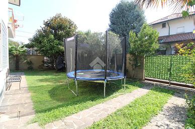 Nerviano, via Masaccio 12. Zona tranquilla e riservata, composta principalmente da ville e case indipendenti, ben riparata dal traffico cittadino e adiacente al centro paese dove possiamo trovare tutti i servizi primari offerti dal comune. Poco distante troviamo il centro commerciale Iper Tosano e la SS33 del Sempione, comoda per spostamenti e tangenziali/autostrade. Proponiamo importante villa singola, libera sui quattro lati, disposta tra piano terra e primo piano. L'immobile gode di una metratura generosa, spazi interni regolari - ampi e confortevoli, un'ottima luminosità data da quattro esposizioni, un ampio giardino in parte pavimentato ed una completa ristrutturazione eseguita di recente. All'ingresso troviamo un disimpegno con la comoda scala a rampa in marmo, che separa la zona giorno dalla zona notte, oltre ad un ripostiglio nel sottoscala. La zona giorno è composta da una importante zona living open space con cucina di oltre 60 mq! Troviamo quindi una zona relax, una moderna cucina completa di isola e piano ad induzione ed una zona pranzo con porta finestra che permette l'uscita in giardino. A concludere il bagno finestrato con doccia. Nella zona notte troviamo cinque ampie camere da letto tutte di taglio regolare e facilmente arredabili, due bagni finestrati completi di doccia, un locale stireria, un grande ripostiglio con lavatrice e asciugatrice annesse, un armadio a muro e due balconi che permettono l'uscita sull'esterno a tre camere ed alla stireria. La camera matrimoniale viene ulteriormente valorizzata dalla grande cabina armadio con due porte scorrevoli. Esternamente troviamo un comodo portico all'ingresso dell'abitazione sfruttabile come area relax o semplicemente come ricovero auto, oltre ad un ampio ripostiglio. L'area esterna di oltre 300mq, in parte giardino e in parte pavimentata, è stata organizzata per permetterne il massimo utilizzo e vivibilità. L'immobile si presenta in ottime condizioni grazie alla ristrutturazione eseguita ne