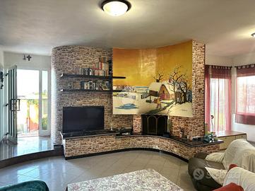 Dal soggiorno, una porta scorrevole conduce a una scala interna che porta al lastrico solare di circa 170 mq, un'area versatile e perfetta per godere della tranquillità e del panorama circostante.