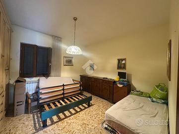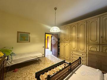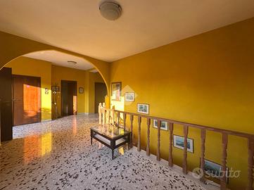 Varcando la soglia d'ingresso, ci accoglie un luminoso soggiorno che, grazie alle ampie finestre, gode di un'ottima esposizione solare. La cucina, attualmente adibita a camera da letto, offre la possibilità di essere ripristinata facilmente nella sua funzione originaria. Sullo stesso livello troviamo quattro camere da letto, spaziose e ben distribuite, e due bagni, pensati per soddisfare le esigenze di tutta la famiglia.