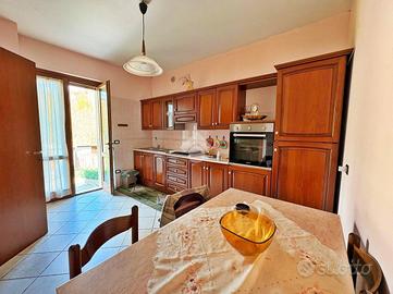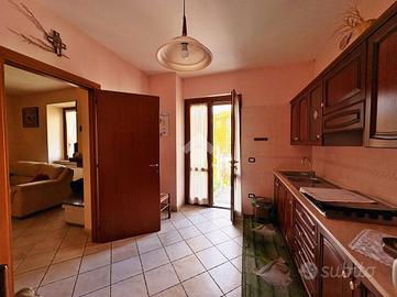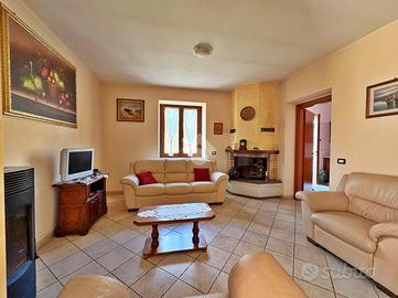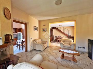 Al piano terra si trovano un accogliente soggiorno con camino e stufa, una sala da pranzo, una cucina abitabile con accesso diretto all'orto, uno studio/lavanderia e un bagno di servizio. Gli ambienti sono caldi e funzionali, perfetti per la vita quotidiana e per momenti di convivialità in famiglia.