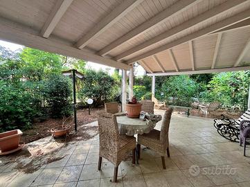 Residence Parchitello- Via delle Magnolie / Noicattaro All'interno del rinomato residence di Parchitello, in un contesto esclusivo e riservato con portineria attiva h24 e splendide aree verdi condominiali, proponiamo in vendita elegante villa singola disposta interamente su un unico livello. La villa è circondata da un ampio giardino ben distribuito, dove si alternano zone verdi e pavimentate. All'interno, l'abitazione si apre su un grande soggiorno luminoso, reso accogliente e arioso grazie alle ampie vetrate che affacciano sul verde. La zona giorno è completata da una cucina abitabile, perfettamente separata e funzionale, con un ampio tinello. Completa la superficie del piano la comoda zona notte con i bagni completi, oltre che finestrati e due camere da letto. Al piano interrato troviamo una zona deposito accessibile da una scala estrerna, molto utile. All'interno della proprietà è inoltre possibile parcheggiare comodamente l'auto nel giardino oltre che all'interno del residence, grazie ai comodi spazi condominiali riservati ai residenti. Libera subito!