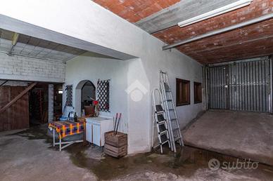 Attraverso la scala interna, si può accedere al piano seminterrato dove si trovano il locale di sgombero adibito a tavernetta, la cantina, il locale caldaia e la grande autorimessa di 46 mq.