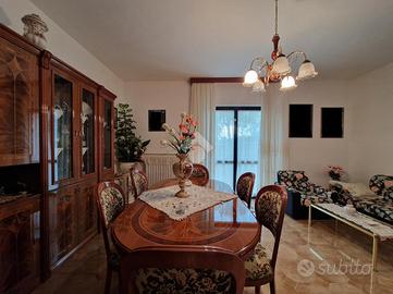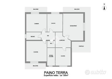 Un porticato permette l'ingresso all'abitazione che si apre su una confortevole zona giorno composta da un soggiorno, una cucina con camino e retrocucina e bagno di servizio. La zona notte ospita tre ampie camere da letto, un secondo bagno dotato di vasca e due balconi panoramici che offrono una splendida vista.