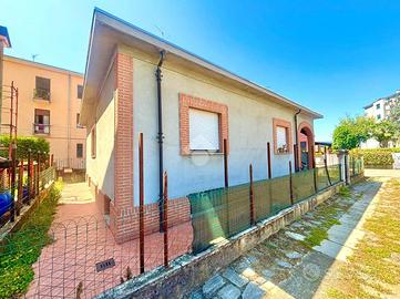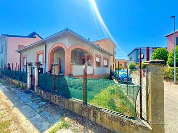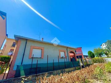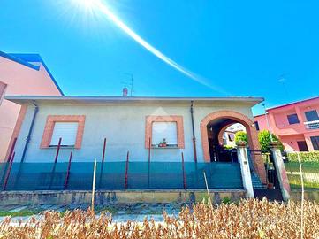 Sant'Andrea - In posizione strategica, comoda a tutti i principali servizi e in prossimità del polo commerciale, proponiamo villa singola libera su quattro lati, completamente ristrutturata nel 2021. L'immobile si sviluppa su un unico livello abitativo ed è composto da ingresso, soggiorno doppio con ottima esposizione solare e cucina abitabile separata. La zona notte comprende due camere da letto matrimoniali e un bagno finestrato con box doccia. Tramite scala interna si accede al piano seminterrato di pari metratura, attualmente allo stato grezzo, con la possibilità di creare una taverna, locali accessori o una zona hobby. Completa la proprietà un box auto situato all'interno del cortile privato. Soluzione indipendente, ristrutturata e funzionale, ideale per chi cerca comfort, privacy e vicinanza ai servizi.