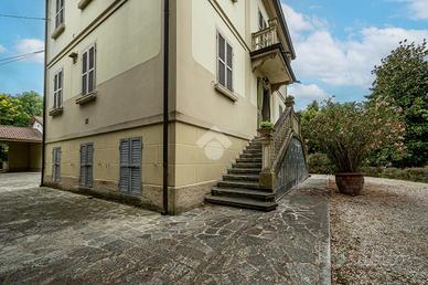 A Santa Maria, nel comune di Novellara, si trova una villa singola d'epoca risalente al 1920. Questa residenza in stile liberty si sviluppa su più livelli, offrendo una superficie di 215 mq. Gli interni sono ben distribuiti, con sei locali che includono tre camere da letto, due bagni una cucina, soggiorno e sala da pranzo. Un balcone aggiunge un tocco di eleganza e funzionalità. All'esterno, un ampio parco privato, curato con attenzione, circonda la proprietà, offrendo uno spazio ideale per il relax e le attività all'aperto. La villa dispone inoltre di un box di 53 mq, garantendo comodità e praticità oltre ad una pertinenza della superficie di circa 250 mq, una volta adibita ad alloggi della 'servitù', oggi accatastati come magazzino/deposito. La struttura è in buono stato di manutenzione, pronta ad accogliere chi cerca una dimora ampia e funzionale dal fascino storico.