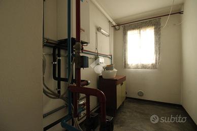 L'immobile, costruito all'inizio degli anni '70, propone un piano terra con altezza superiore ai 2.70 m, dove sono state ricavate una stanza adibita a studio o stireria, un bagno, un grande magazzino, dov'è presente una seconda entrata e la centrale termica. Oltre a ciò, è presente, scendendo circa 5 gradini, una cantina, dove si possono riporre salumi e vini.