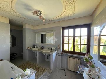 OLEGGIO: immersa nel verde, villa singola libera su tre lati. Questa proprietà si sviluppa su più livelli, offrendo spazi ben distribuiti per ogni esigenza. Al suo interno, la villa dispone al piano terra di una cucina abitabile, sala da pranzo, soggiorno. Tramite scala interna, si accede al primo piano composto da uno studio con vetrata con vista sul giardino retrostante, due camere da letto ampie e luminose e un bagno con vasca. All'esterno il giardino circonda la villa, offrendo uno spazio verde privato. La proprietà include anche un box e un posto auto, garantendo comodità e sicurezza per i veicoli e una serra vetrata. Questa villa rappresenta un'opportunità unica per chi desidera vivere in una dimora dal design storico.